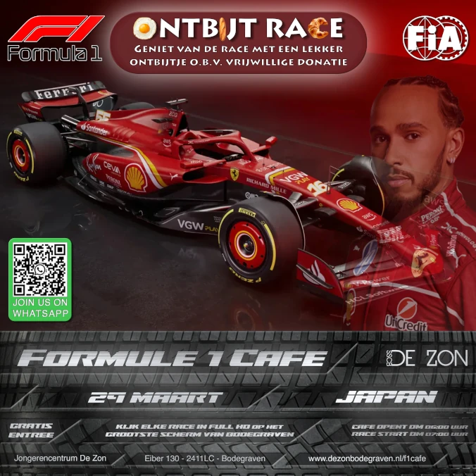 Tot Zondag bij het enige echte Formule 1 café van Bodegraven!