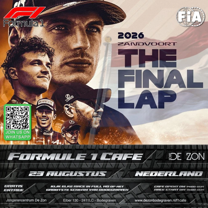Elke race belooft opnieuw spanning, strategische meesterzetten en knetterende inhaalacties. Dus pak je drankje, neem lekker plaats en beleef elke ronde mee in het F1 Café — dé plek waar je samen met andere fans niets van het seizoen hoeft te missen! 🏎️🔥