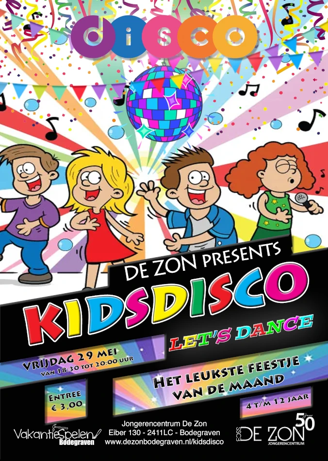 Kom je ook gezellig dansen, zingen en spelen bij de KidsDisco in jongerencentrum De Zon?