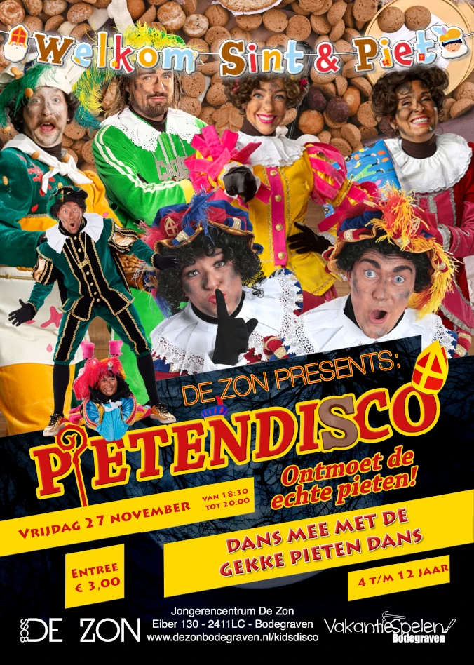 Komende KidsDisco staat dan ook weer traditiegetrouw geheel in het teken van onze goedheiligman tijdens onze welbekende PietenDisco.