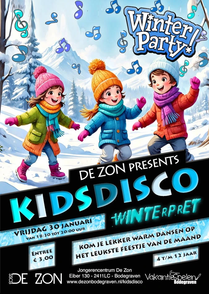 Terwijl de wegen glad zijn en de sneeuw vrolijk uit de lucht dwarrelt, zijn wij natuurlijk alweer druk bezig met de voorbereidingen voor het allerleukste feestje van de maand. Vrijdag 30 januari maken we er een weer een dolle boel van bij de allerleukste KidsDisco van Bodegraven-Reeuwijk.